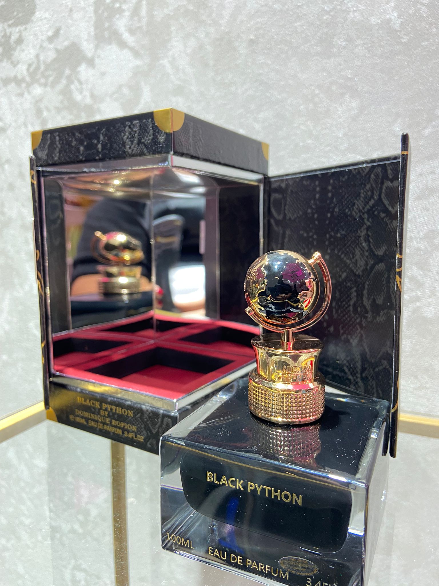 Dominique Ropion incanta con la sua fragranza Globe Black Python Eau de Parfum: un’esplosione di note di testa di pepe nero, di cuore di assenzio, assoluta di cipresso, lavanda e fiori d’arancio sostenute da un fondo vellutato di tonka, vetiver e patchouli. Vivi un’esperienza a 5 stelle con questo profumo!